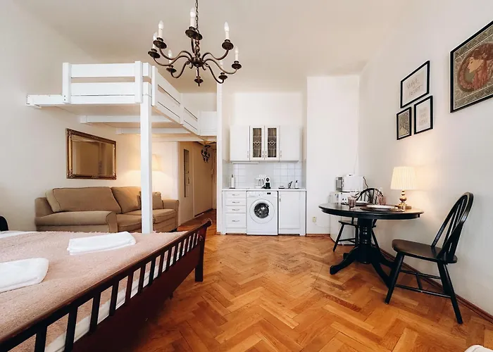 1-pokojowy apartament leży w starej części Pragi, prawie 5 min piechotą od stacji metra Namesti Republiky. Apartament o powierzchni 35 m^2 leży prawie 25 min spacerem od takich miejsc jak Wzgórze Petrzyn. 6 min spacerem od obiektu leży Roxy Club.
